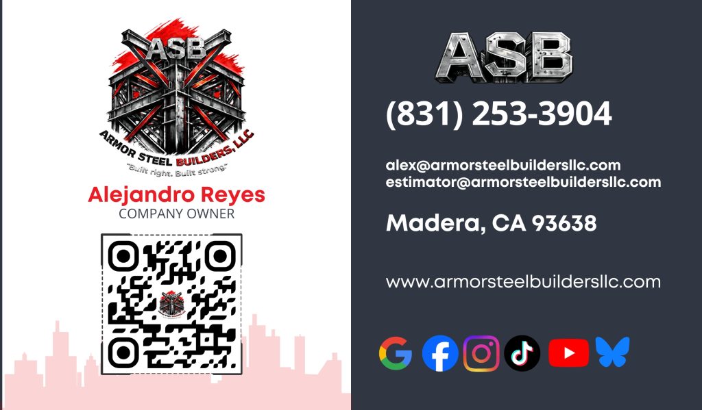 Founded in Madera, California, Armor Steel Builders, LLC. has built a solid reputation as a trusted general contractor serving both residential and commercial clients within a 200-mile radius.